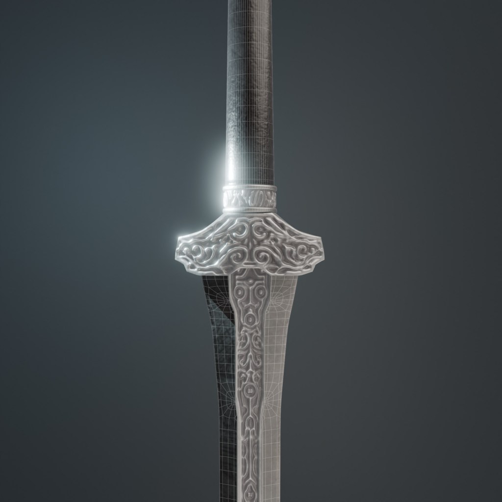 rhino 3d famously doesn’t care for meshes and, therefore, topology. i thankfully didn’t struggle to understand how to work with quads whenever possible, in large part to my rapid start as a 3d artist in late august, but i did have to create some test swords aside from this project in order to understand better ways to model with topology in mind.