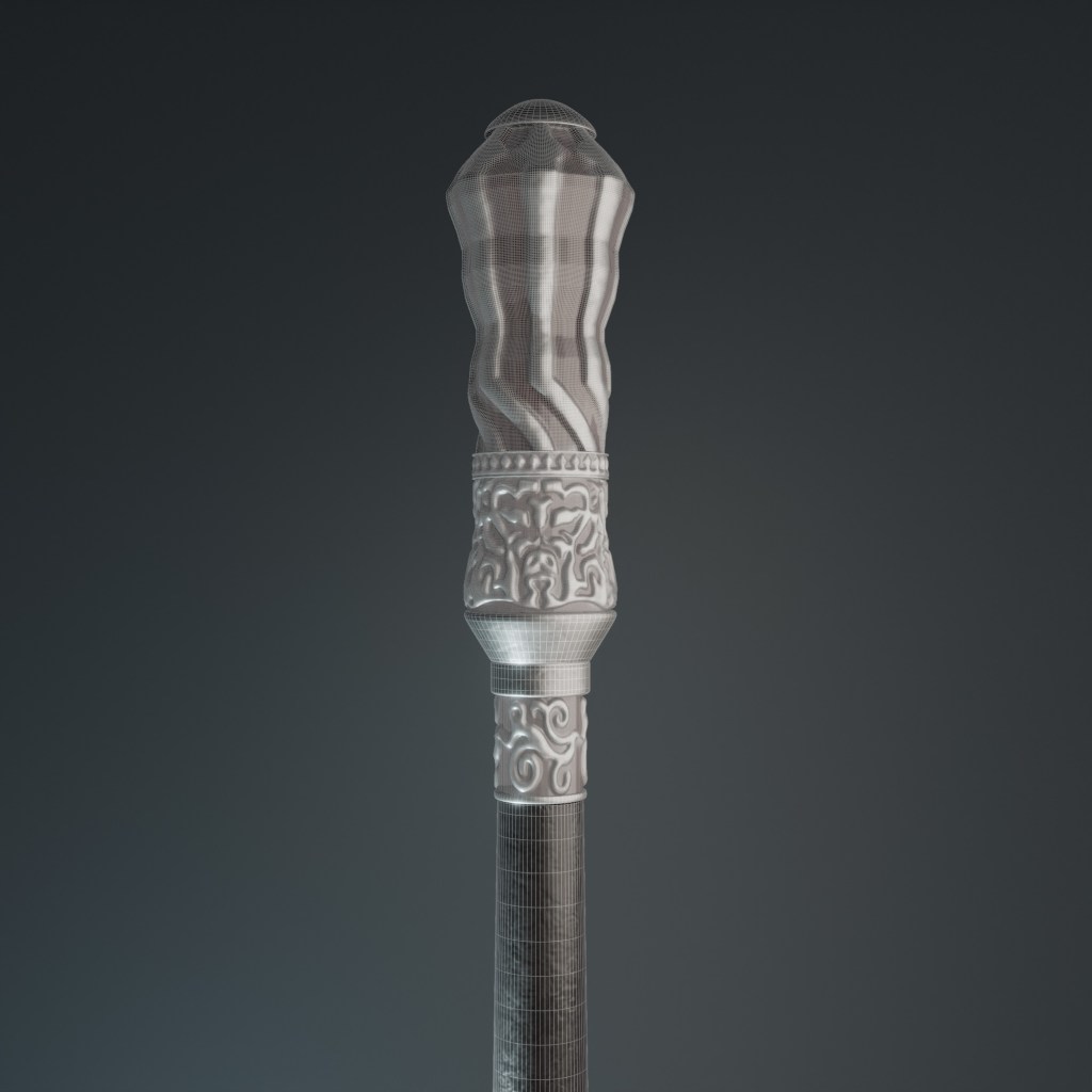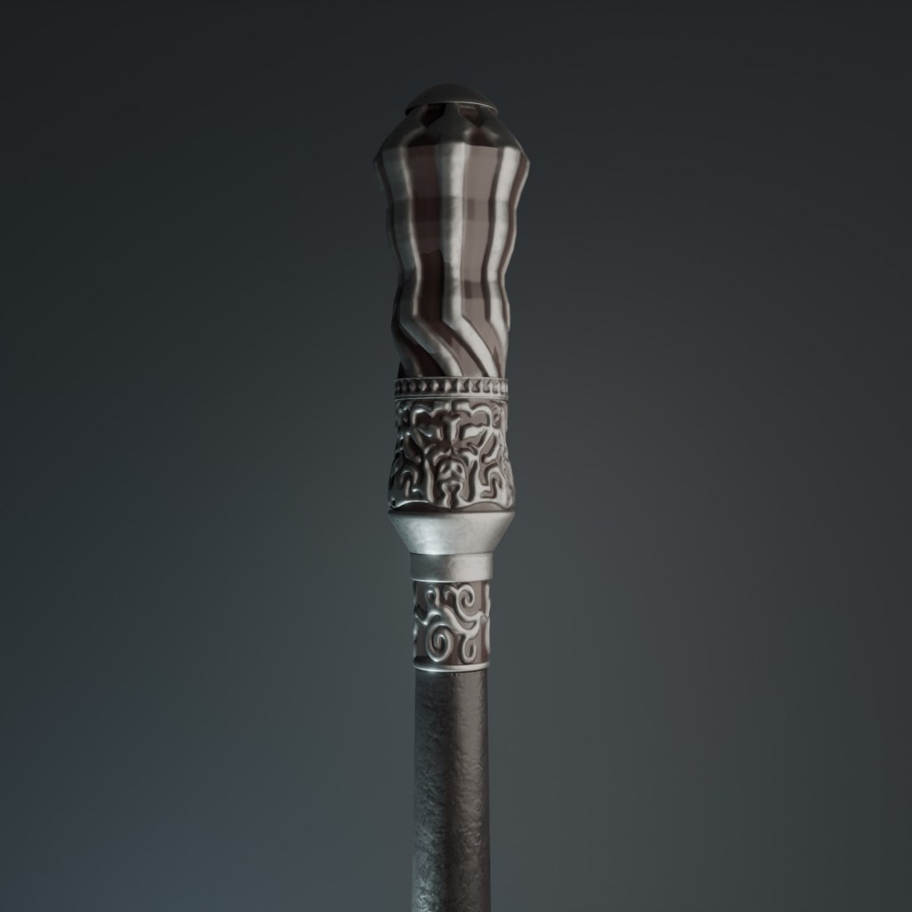 the pommel presented some newcomer challenges to my blender journey. i originally modeled it without displacement maps, rotating the bottom vertices in a very disgusting way to create the ending turn. once i found a good workflow for creating maps, however, i went back and fixed my mistakes.