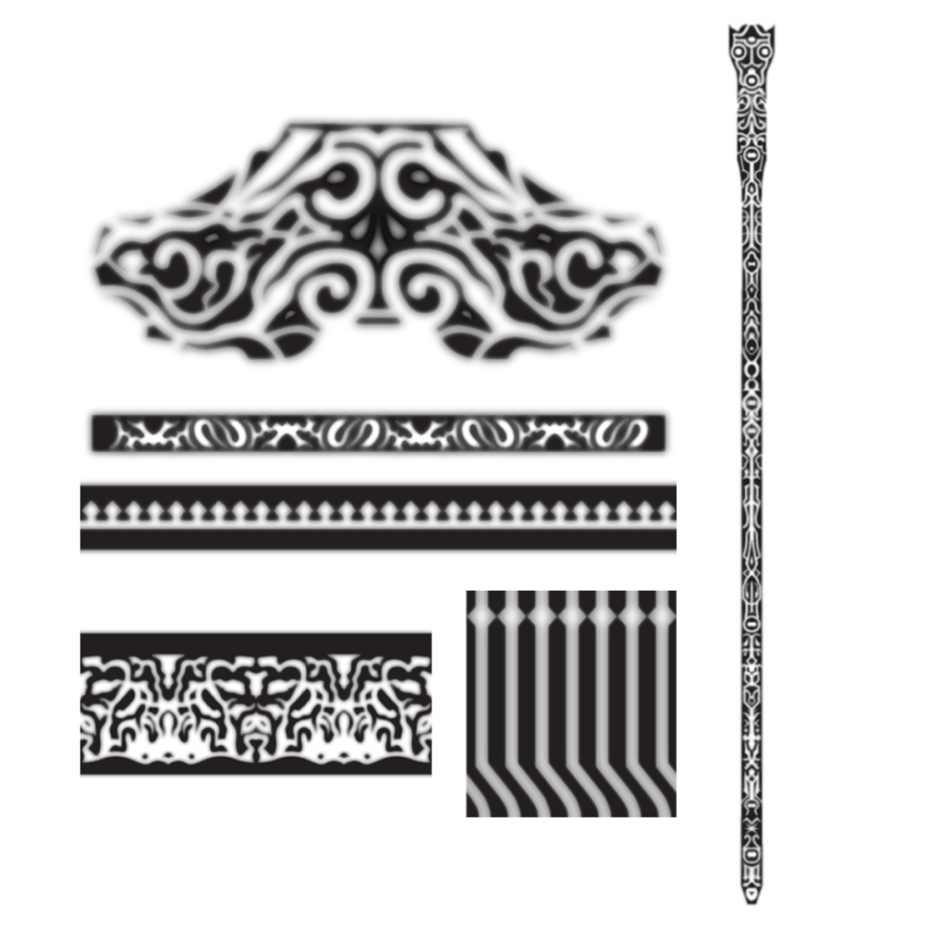 a lack of good reference images became challenging when drawing displacement maps. i often had to make things up as references either didn’t show something or were incredibly blurry. these were drawn in rhino 3d (my preferred tracing software) and imported into illustrator, where feathering and outer glows were applied. this last step is what gives the displacement a more curved fall off!