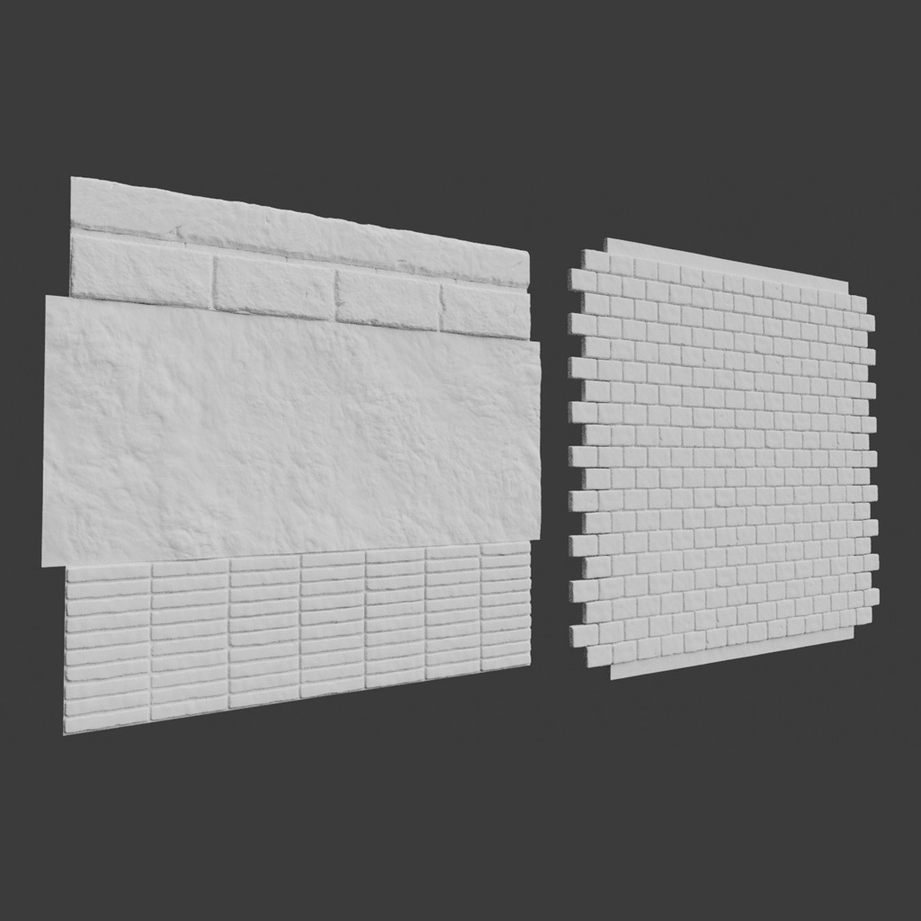continued with some sculpted tileable texture sheets (2 sculpts, 3 sheets) and substance painter time. i’ve also been taking every piece from low-poly to mid-poly, adding bevels and smooth shading. these are all in-progress screenshots, just documenting what i’ve done so far.
