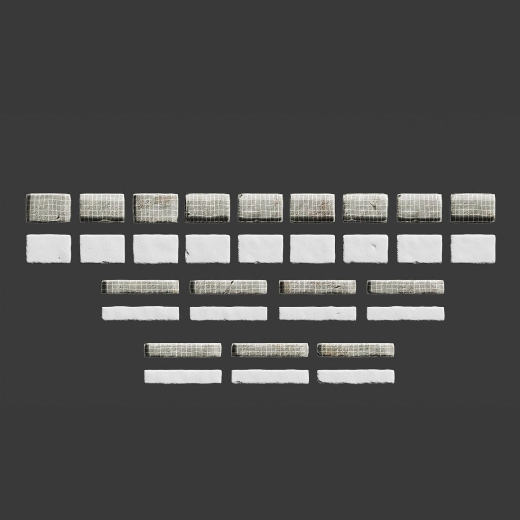 the brick rework allowed me to revisit how pieces are put together as well. in order to better maintain the 400×300 unit of each wall, the edge bricks are cut in half; instead of moving to the mortar edge, pieces now connect at that brick half to create a more seamless bridge, an issue that was taking a significant amount of time to solve in wip.02