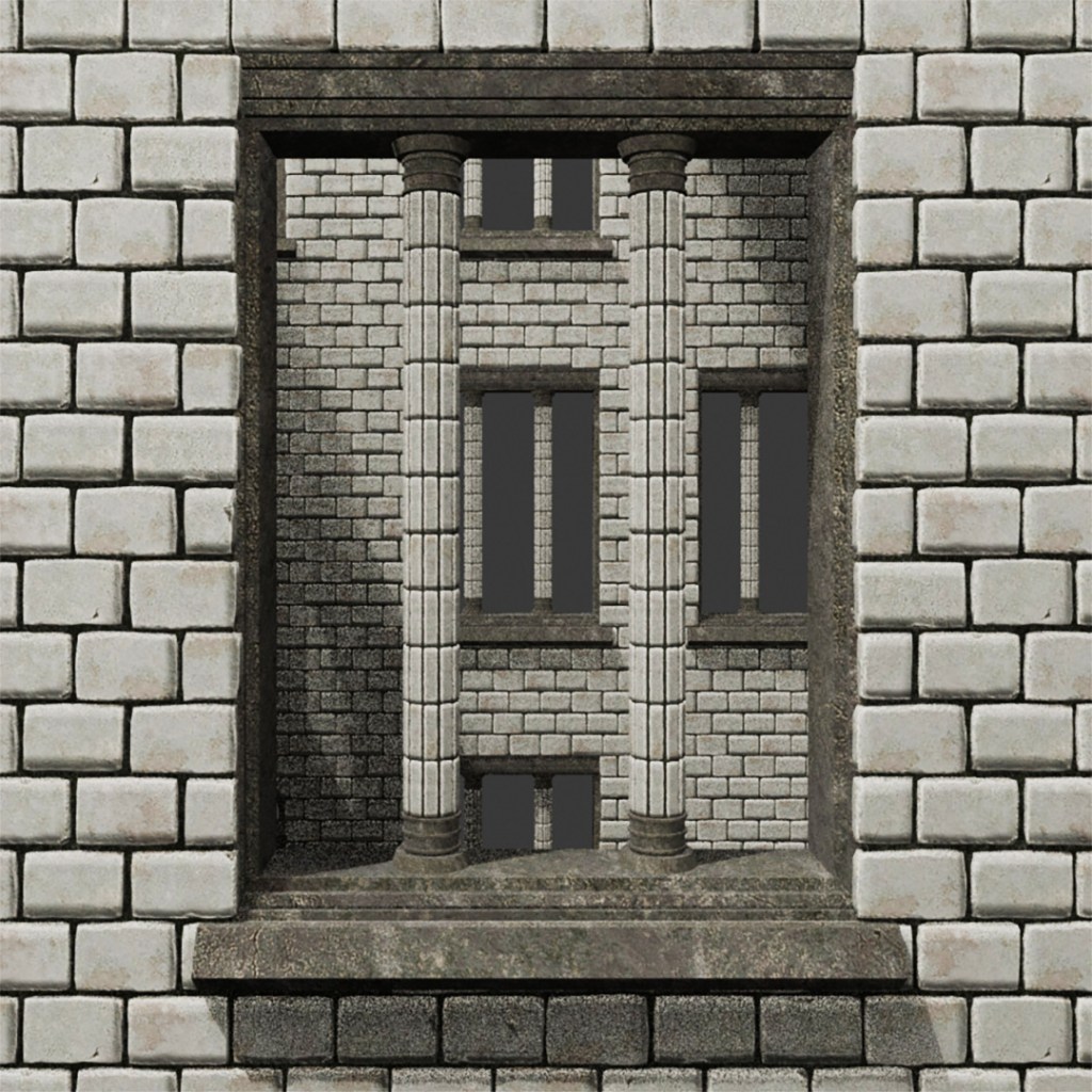 the biggest change lies in the bricks; instead of using a tileable texture, i went back in, retopo’d my sculpted bricks, and used them to create actual depth. each brick’s total face count lies between 110 and 200, and they additionally carry their own texture sheets to preserve texile density as much as possible.