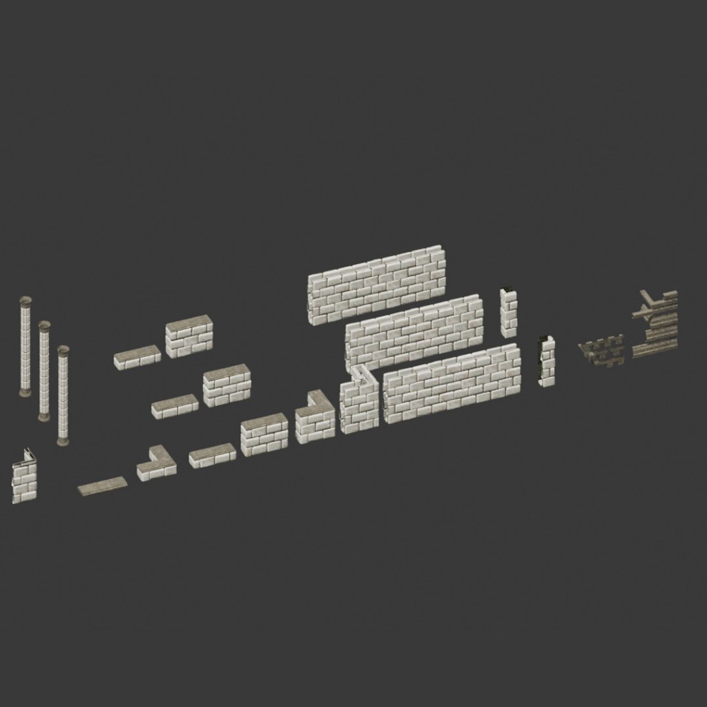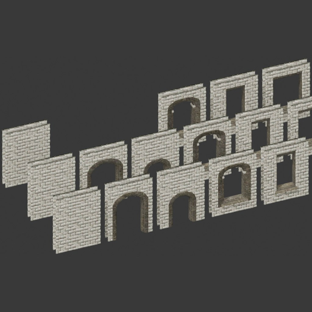 while most pieces have 3 variants, lesser used/smaller pieces, such as the corners and doorways, get away very easily with only 1 or 2.